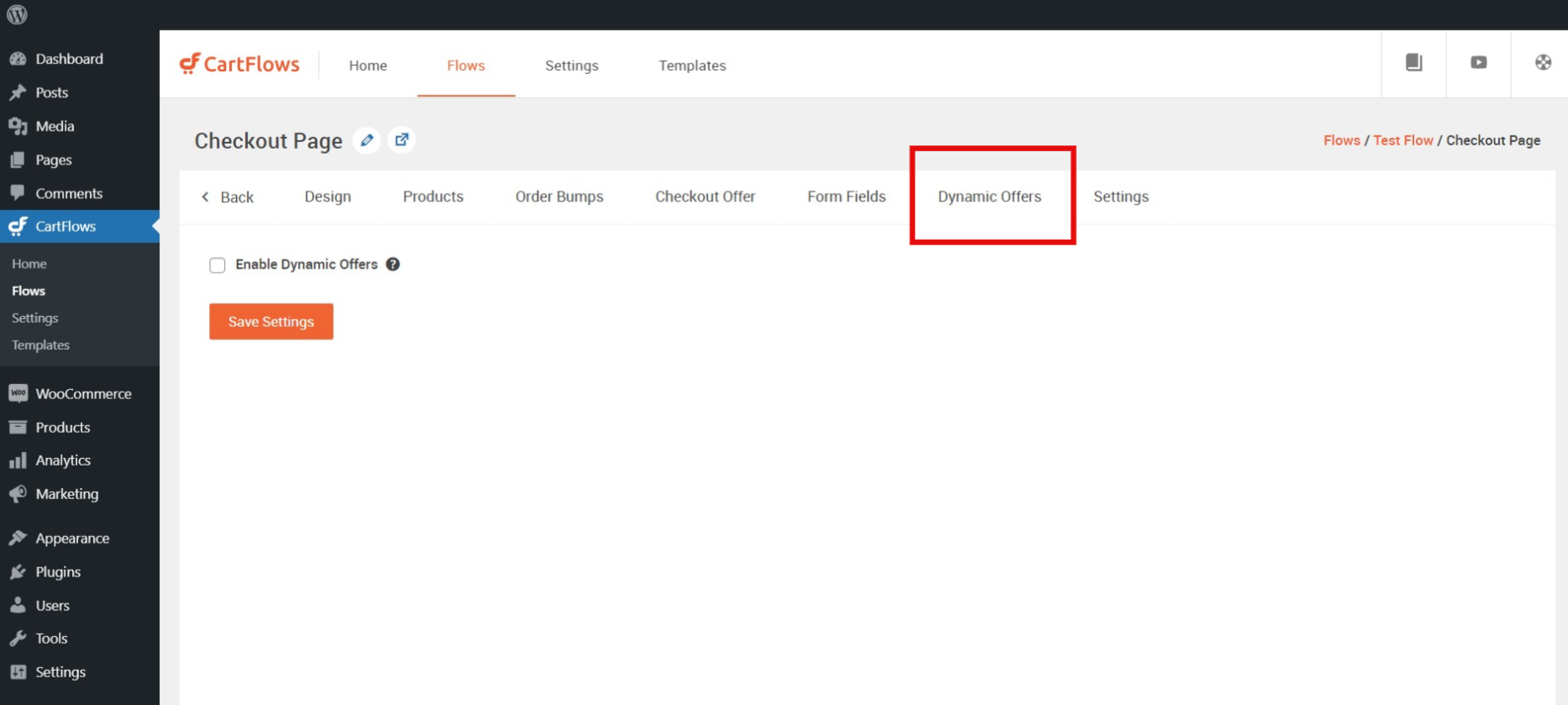 - Dynamic Offers menu in CartFlows Checkout Setting page