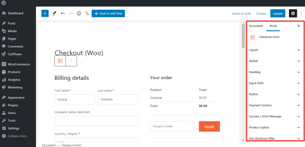 We are releasing Gutenberg Blocks for CartFlows 1.5.20 & CartFlows Pro 1.5.12 version and above. These Blocks will provide more styling options for the shortcode and increase the flexibility to design the CartFlows pages.
