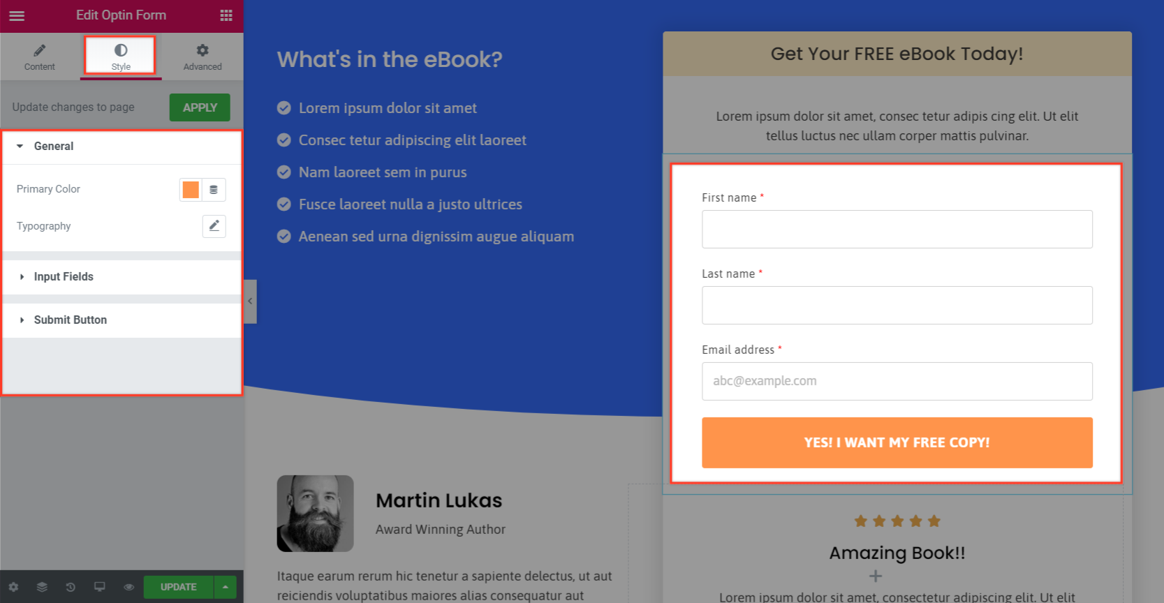 # Setting in the Style Tab: This tab has all the required styling options to change the look and feel as well as the overall appearance of the order review form.