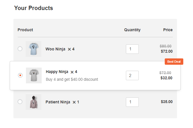 The Highlight Product feature will let you highlight one of the product variations that you have selected in the backend setting of the checkout page with a very appealing design.