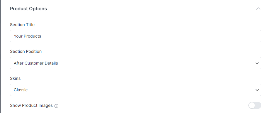 - Show Product Images: Displays the Product Images.