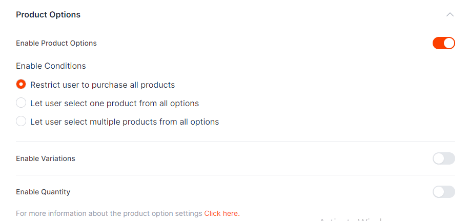 3. Layout Options: In checkout step settings, Go to the design tab > Product options. This section will display the below options –