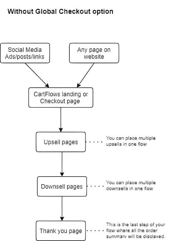 By default, CartFlows funnels work independently. You can send users directly to a Landing Page or Checkout Page via ads, social media, or your website’s navigation.