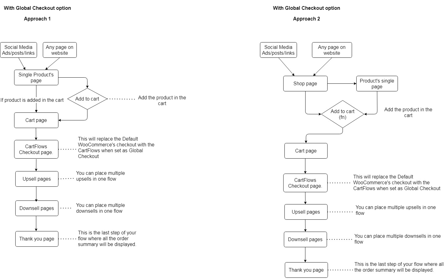 Shop Page → Cart Page (optional) → CartFlows Checkout Page → Thank You Page