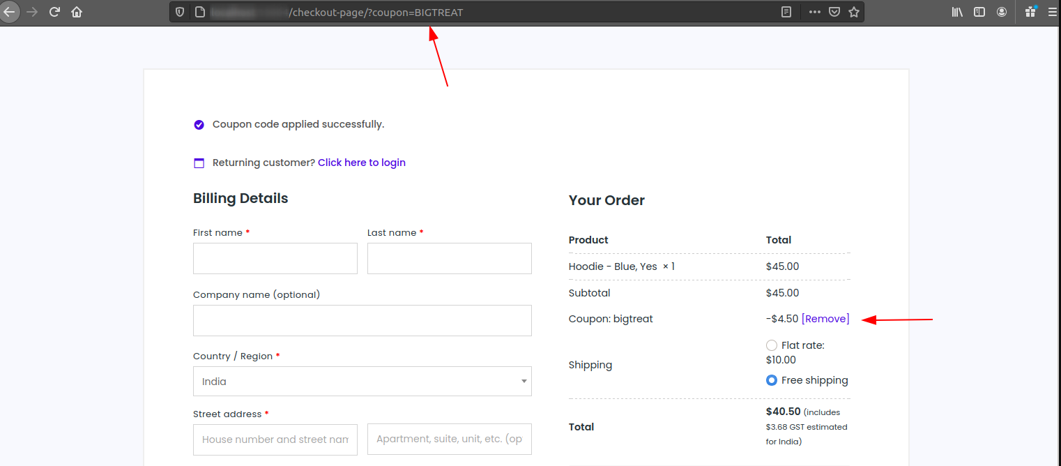 - Applying a Coupon from the URL
