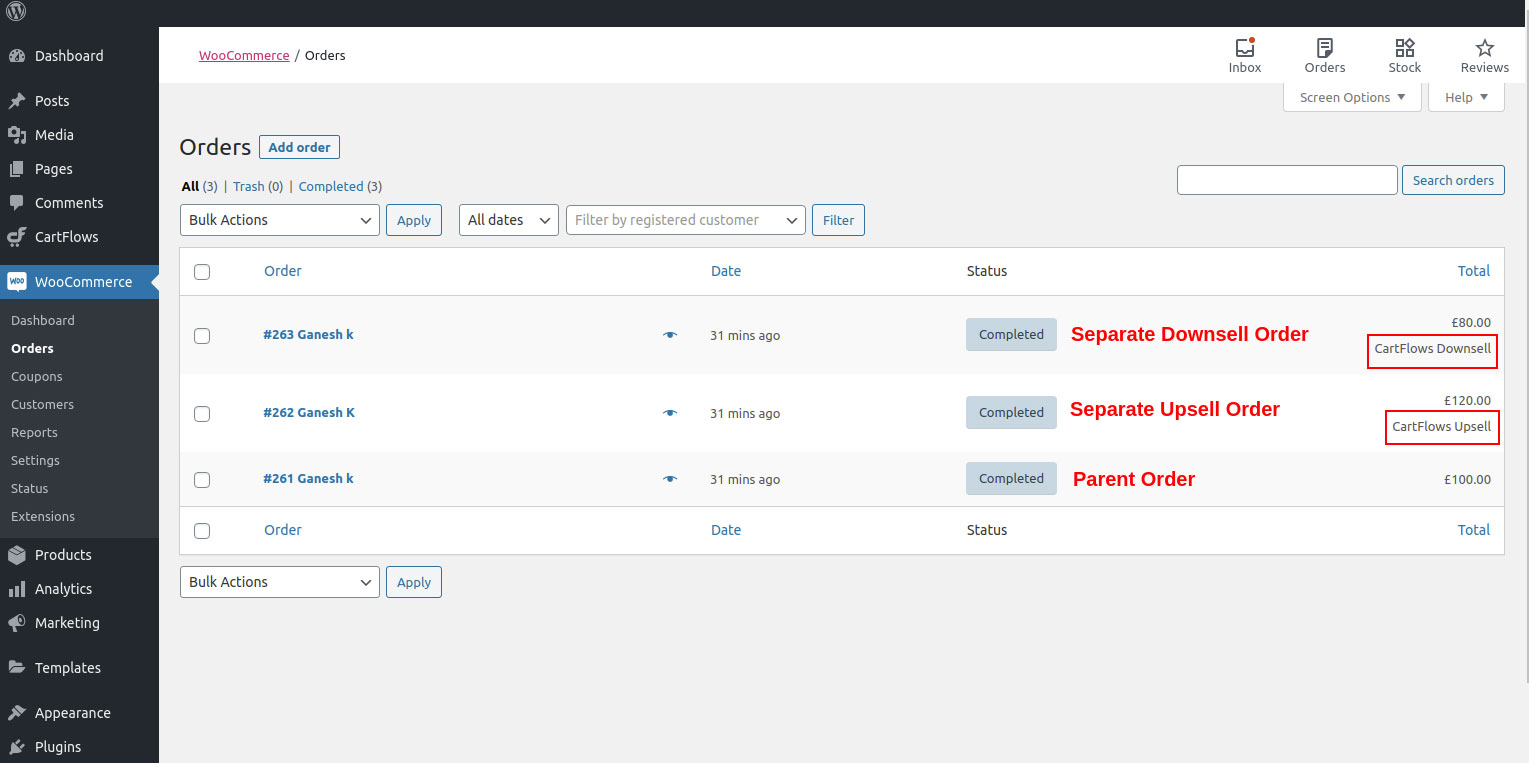 Previously, in the CartFlows, all the products which are purchased from the Checkout page, Upsell & Downsell pages are getting added in the one single order of WooCommerce. In that case, the main order’s order status gets set to MainOrderAccepted.