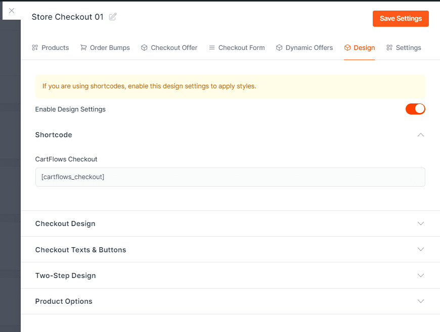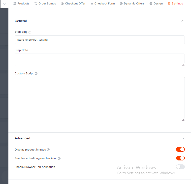 Click the corresponding Settings option for the Checkout Step in the Funnel.
