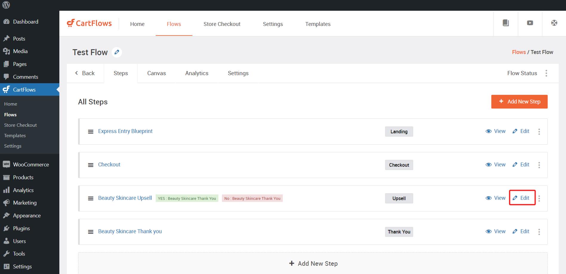 Step 1: Edit the flow and click on the edit button to modify the upsell/downsell page.