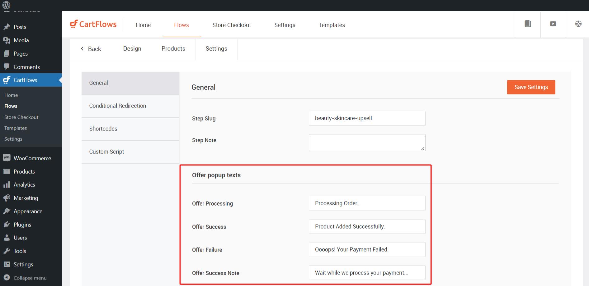 Here, in this section, you will get four string options that are directly attached to the popup which is displayed on the offer page when it is accepted or rejected.