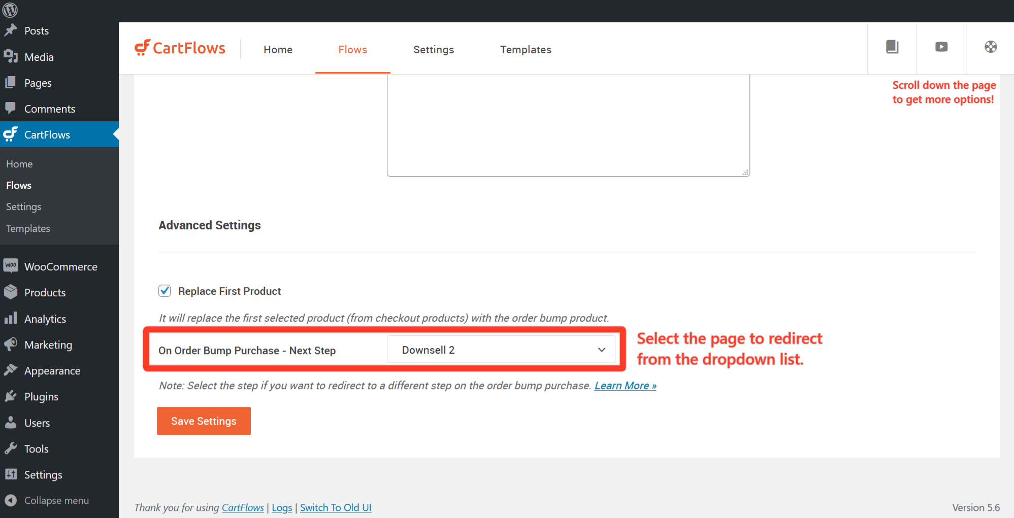 This feature will help you to redirect the user to another page i:e Upsell or Downsell if the order bump product is purchased.