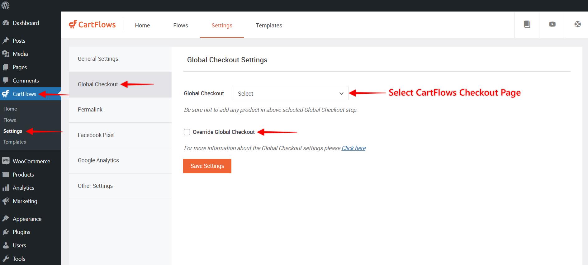 This setting/option is added to the Global Setting page of CartFlows. Below are the steps which will guide you to enable it.