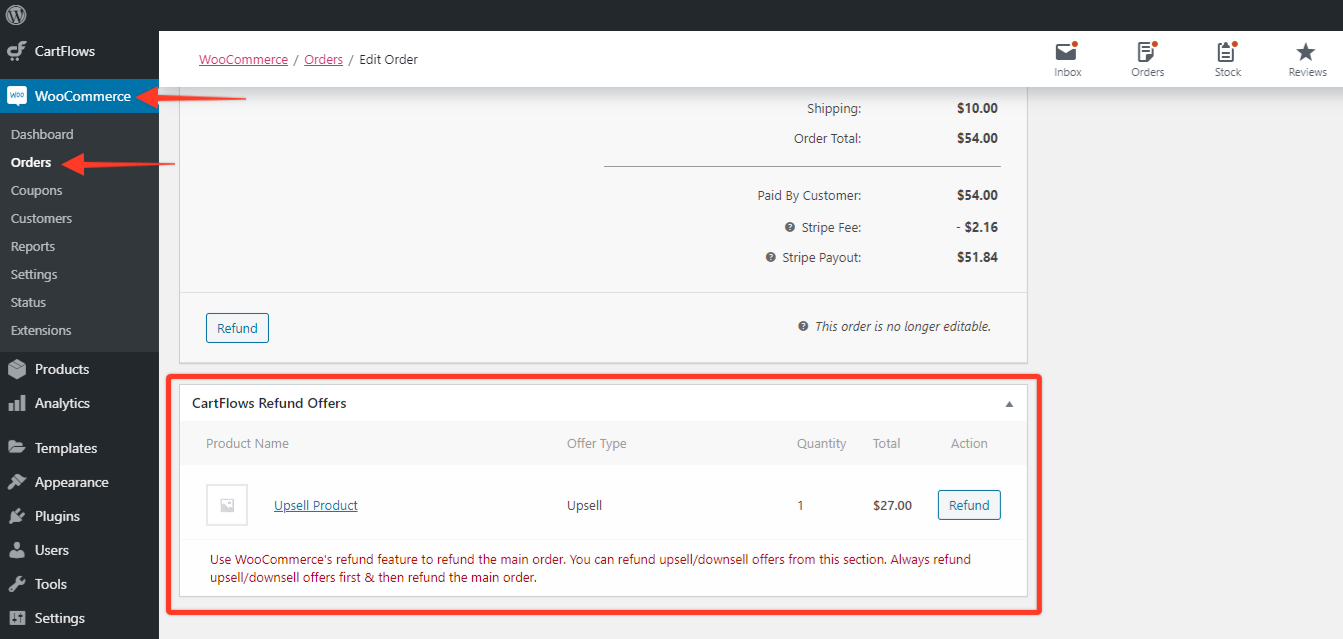 CartFlows introduces the Refund Offer feature. This feature will be available in the CartFlows Pro version 1.5.3 and above. This will allow you to refund the offer products i.e the products Purchased / Sold from the Upsell & Downsell pages.