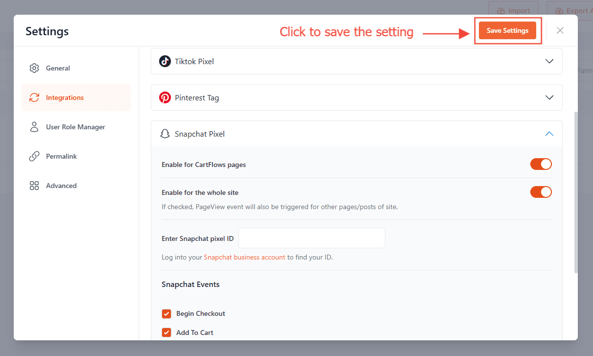 Steps to Add Snapchat Pixel ID in the CartFlows Settings –