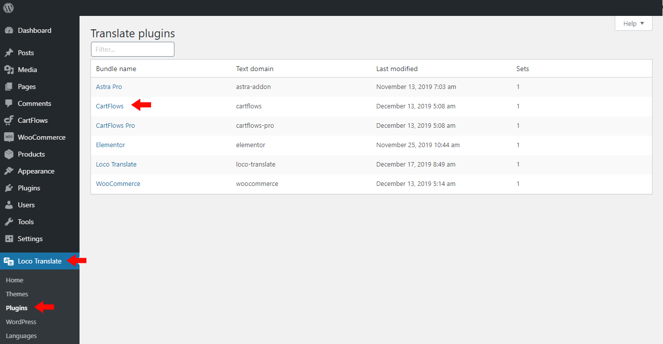 Step 1: After you Install & activate the Loco Translate Plugin. Navigate to WordPress Dashboard > Loco Translate > Plugins > Choose CartFlows