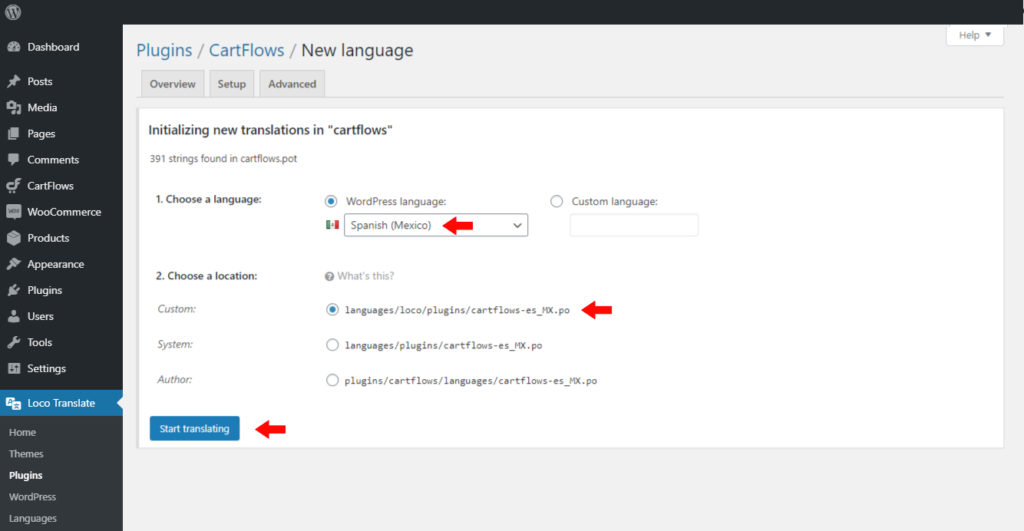 How to Translate the CartFlows using the Loco Translate Plugin?