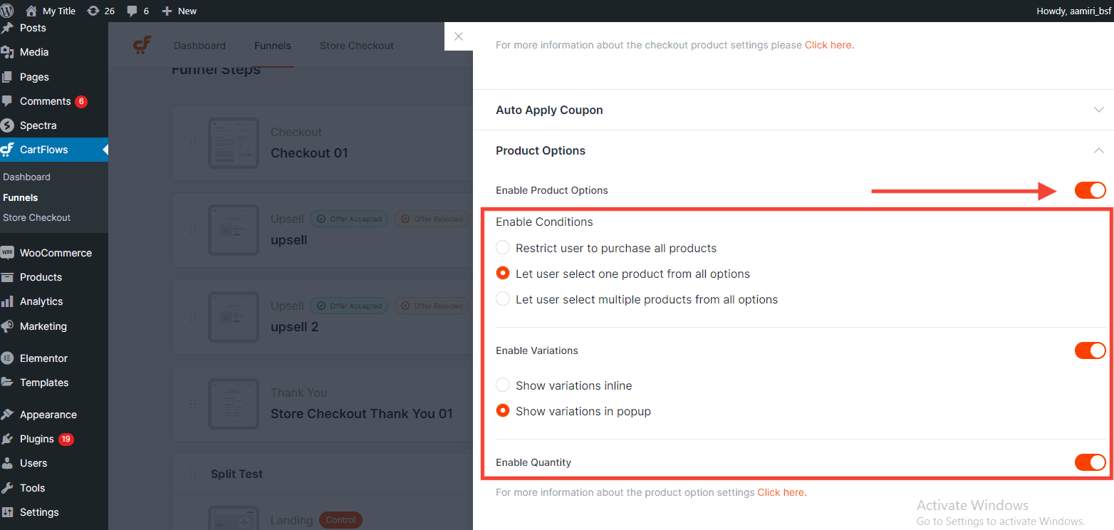 Step 5: Enable the variation option to display the multiple product selection choice on the checkout page.