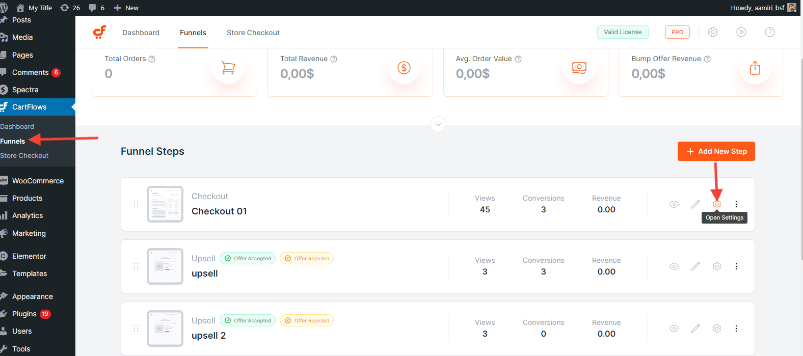 Step 1: Navigate to the CartFlows -> Funnels -> Your_funnel